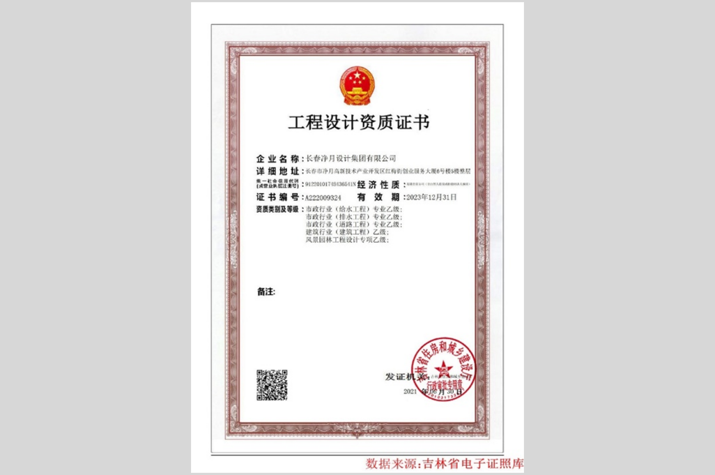 吉林省净发规划建筑设计研究总院有限公司(原长春净月设计集团有限公司),注册资本金31750万元人民币,现有员工213人,其中专业技术人员160余人。公司拥有规划甲级、建筑甲级、风景园林甲级、市政(道路、给水、排水)乙级、工程造价乙级、工程咨询资信乙级、测绘测量乙级、监理(房建、市政)乙级资质,可承接工程项目的全过程服务;具备房地产开发二级资质,可进行项目的开发和建设;具备招标代理服务能力,可开展政府采购招标代理相关业务;具备建筑工程施工总承包贰级、市政公用工程施工总承包贰级、施工劳务资质,可承揽相关项目工程建设。