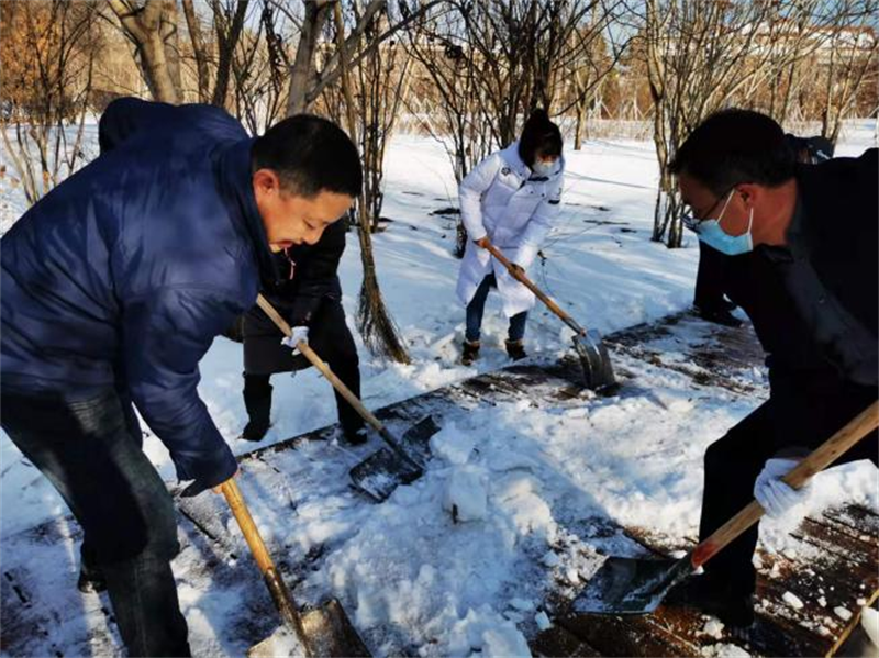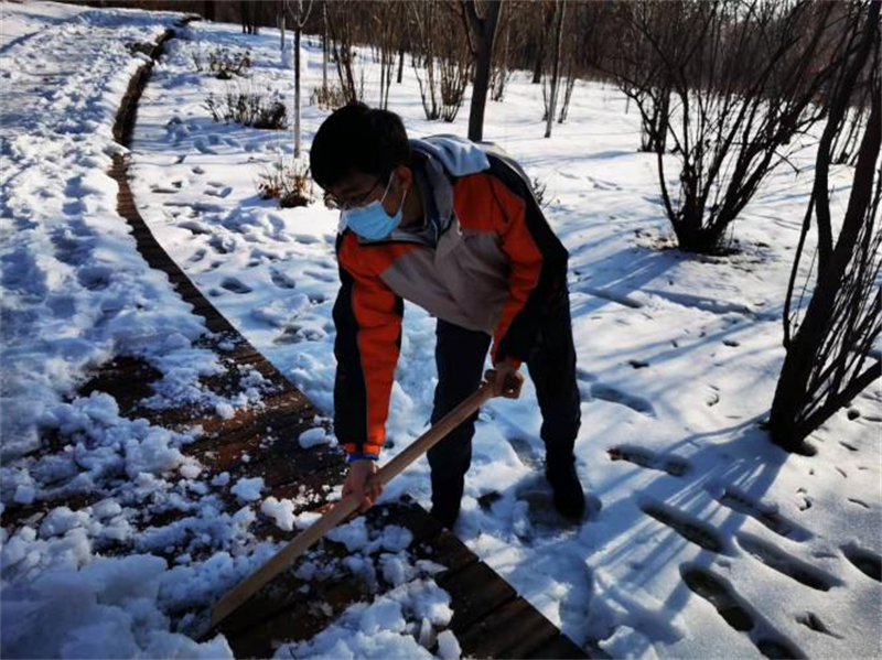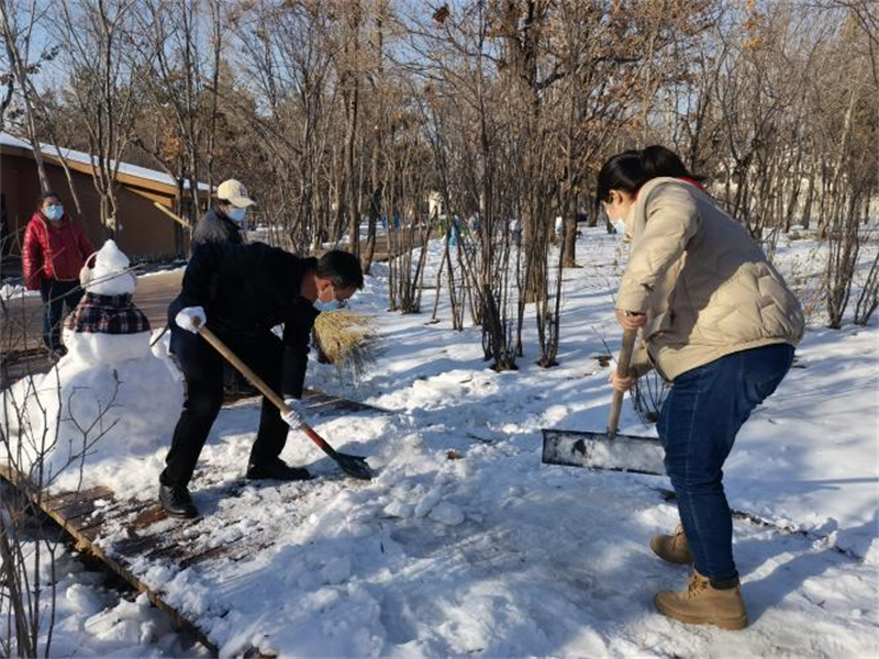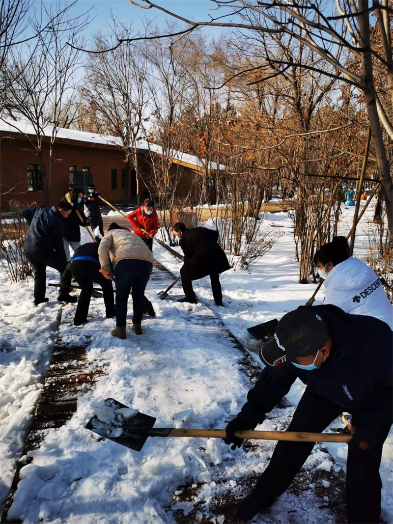 近日的连续降雪给刚刚进入冬天的长春带来了银装素裹的美景,景区环潭路及木栈道的积雪给游客带来的安全隐患也随之而来。为保证游客在园区内游园的安全以及景区的品质形象,增强游客的满意度,1月13日,机关支部积极响应集团党委的号召,在孙海山书记的带领下,结合园区实际情况,组织党员同志在正门广场木栈道进行清雪的活动。在此次活动中,每一位党员都争先恐后,用最朴实的方式为园区贡献着自己微薄之力,给寒冷的冬天带来一丝暖意。通过此次“党员奉献日”的活动,进一步增强了机关支部的凝聚力和战斗力,彰显了党员的示范引领作用,激发了党员的奉献热情,不断树立党员同志的责任感和使命感。