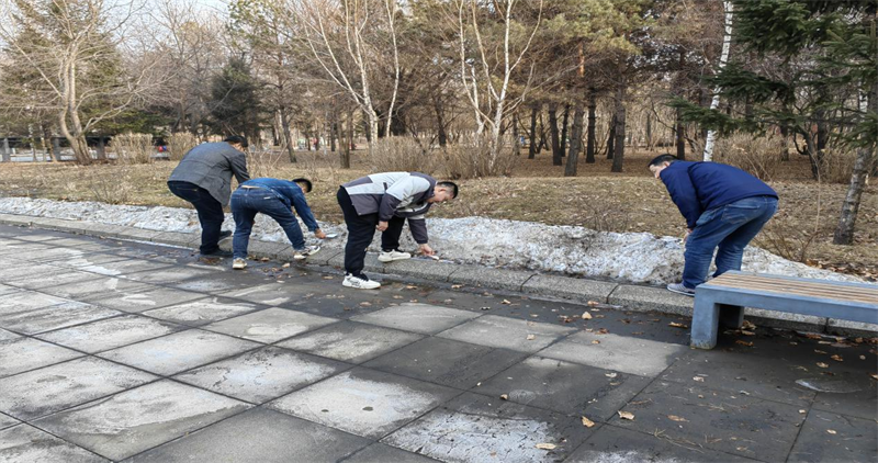 联合党支部的党员同志,积极分子走进景区开展活动。当前景区内的雪已经融化,残存在雪地里的垃圾也展现出来,为了景区春夏季经营的新规划,党员同志们对景区的环境卫生提前进行拉网式的清扫,清捡雪地中的残存垃圾,保护景区环境。