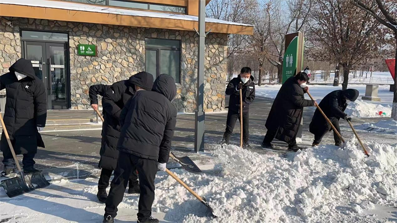 在支部书记的带领下,全体党员紧密合作,对净月潭景区女神广场和木栈道进行清雪活动,党员们干劲十足,大家不惧寒冬,不怕苦累,热情高涨,以劳动为荣,用实际行动诠释党员吃苦在前、敢于担当的精神。