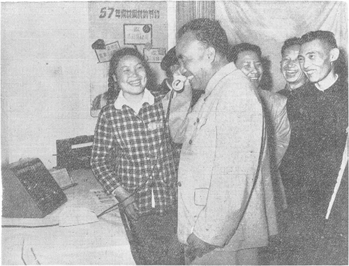 朱德用南京有线电厂的无电源电话机进行通话实验(1958年)