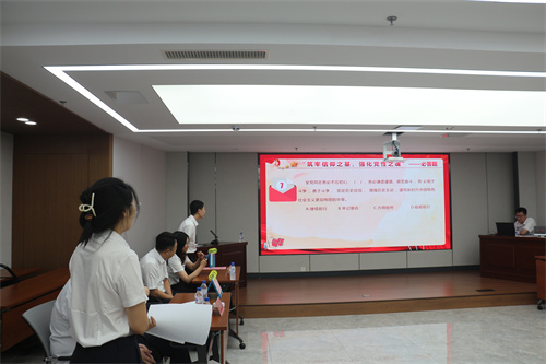 第三个环节——抢答题,将活动推向了高潮。选手们反应迅速,抢答成功后,对题目对答如流,赢得了现场观众的阵阵掌声。抢答题环节不仅考验了党员们的知识储备,还锻炼了他们的反应能力和团队协作能力,党员们更加坚定了党性之魂。