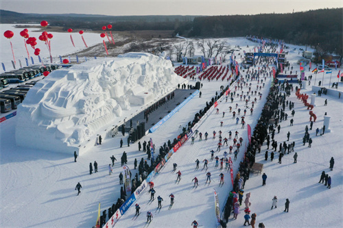 这是2024年1月4日在吉林省长春市净月潭国家森林公园举行的第22届中国长春净月潭瓦萨国际滑雪节现场。(新华社记者 许畅 摄)