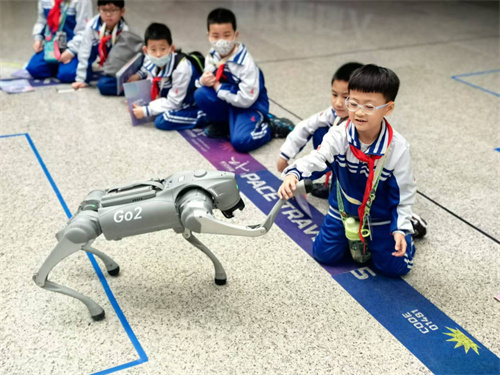 图为学生在时空旅程(长春)人工智能科技研学体验馆与机器狗互动。(受访者供图)