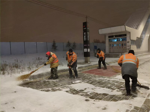 11月26日早晨,我市迎来入冬以来第一次降雪,本次降雪前期由小雨转雨夹雪转大雪,气温变化快,雨雪转换复杂。在市区城管局统一部署下,城市运营公司组织净发环卫迅速行动,自26日零时起展开快速路、三条公路城区道路以及农村路不间断作业,人工机械配合清理轻轨地铁站点、过街天桥、学校周边以及步道等重要节点积雪。