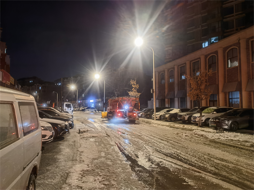 面对突发状况,环卫公司立即启动应急响应机制。净发城市运营公司总经理李志国、净发环卫公司总经理张博等同志迅速抵达现场,靠前指挥,紧急调配清雪车辆,撒布融雪剂进行除冰作业,工作人员不畏严寒,全力消除交通安全隐患,截止27日早8点,路面已恢复正常通行。