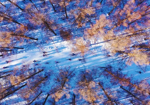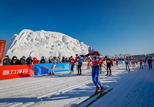 冬季的净月潭,一派白雪皑皑、千里冰封的北国风光。随着发令枪响,身着各色滑雪服的运动健儿们,犹如一条长龙,从“净月雪世界”主题雪雕园的瓦萨门起点飞驰跃出,在赛道上快速滑行,尽情体验着冰天雪地间的速度与激情。一道道“滑翔”的身影,在雪道上画出一道道美丽的“彩虹”,犹如一个个滑动的“音符”,奏响冬季冰雪运动的交响曲,开启冬季冰雪运动大联欢。