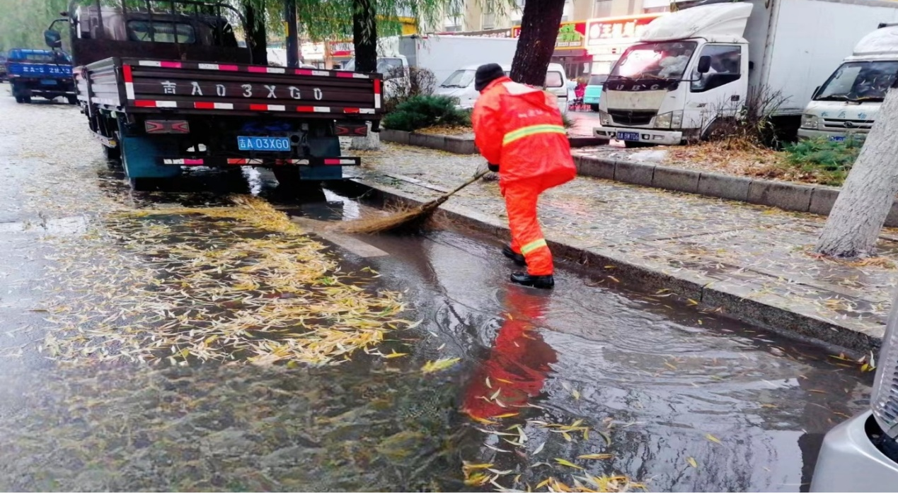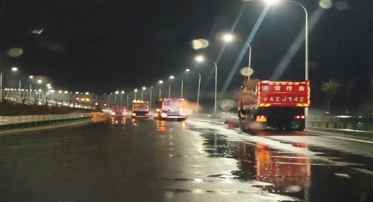 为应对此次暴雪,净发环卫公司提前制定工作方案和应急预案,成立了领导小组,完成196台大型清雪设备维护和1100吨融雪剂等清雪物资调配工作,组织清雪人员1374人全面进入备战状态。5日下午,出动大中型滚刷车116辆,人员1348人次,编成14个作业区域,平行展开扫水作业,对城区194条主次街路及34条农村主要道路展开不间断循环作业,共处理积水点16处,作业面积近1000万平米。 6日12时,全区主次街路、农村主要道路融雪剂全部撒布完毕。由于方案部署得当,没有出现道路结冰现象。下午16时,组织滚刷车辆编组,展开联合循环清雪作业,并根据雪量情况组织260台外运车辆边清边运,确保7日早高峰前,路净车通。