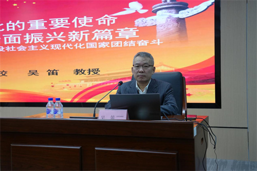 培训会上,吴迪教授围绕“牢牢把握东北的重要使命,奋力谱写东北全面振兴新篇章”这一主题,进行了重点解析,以党的十八大以来党中央开展的5次党内教育为主线,深入阐述了习近平新时代中国特色社会主义思想主题教育的重大意义,并从新时代东北全面振兴的角度,探讨了吉林省、长春市和净月区实现高质量发展的新路径。整个培训过程中,吴迪教授引经据典、挥洒自如、轻松幽默,将相对抽象的政治问题、经济现象和社会变迁,用喜闻乐见的方式表达出来,引来大家热烈的掌声。在吴迪教授精彩培训后,集团党委书记、董事长杜峥平从强化理论武装上持续发力、调研成果转化上持续发力、推动振兴发展上持续发力、建立长效机制上持续发力四方面作了总结讲话,鼓励集团广大干部奋力拼搏、建功立业。