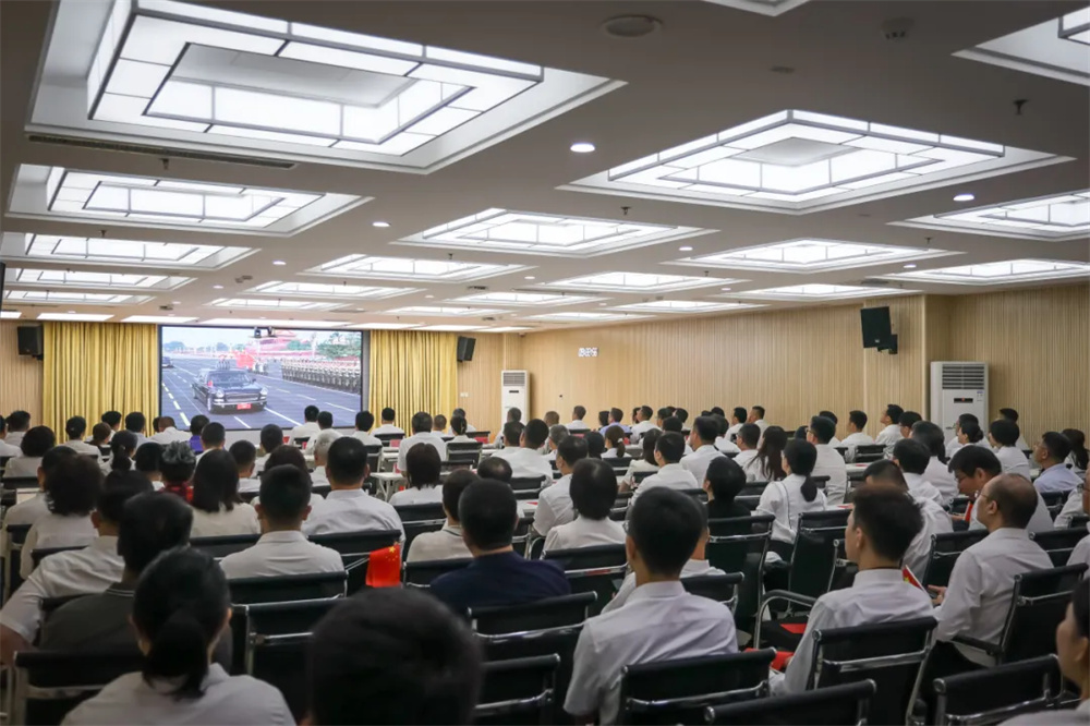9月3日上午,纪念中国人民抗日战争暨世界反法西斯战争胜利80周年大会在北京天安门广场隆重举行。中共中央总书记、国家主席、中央军委主席习近平发表重要讲话并检阅部队。净月高新区全体党员干部集中收看大会直播盛况,认真聆听习近平总书记重要讲话,共同铭记历史、缅怀先烈、珍爱和平、开创未来。
