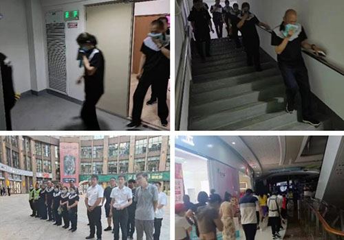 为进一步提高辖区重点场所工作人员消防安全意识,6月27日,德正街道、社区联合环球广场组织商户及物业人员开展安全生产消防应急疏散演练活动。本次演练突出实战性,就“商场夜间因突发事件导致商场断电”这一突发情况进行现场模拟。演习过程中,各商户、物业工作人员在楼层引导员的引导下有序疏散到室外空旷区域,整个演练过程快速、有序、安全。本次演练增强了商场人员的应急逃生能力,提高了大型商场应对突发事件的处置能力。