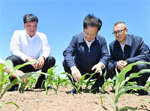 调研途中,景俊海随机下车走进路边田地,俯身察看农作物长势,强调要深入田间地头开展生产指导,帮助农民做好田间管理和病虫害防治,积极推广农业新技术新模式,推动粮食综合生产能力稳步提升、节节攀升,努力早日实现年产千亿斤粮食目标,坚决扛稳维护国家粮食安全重任。