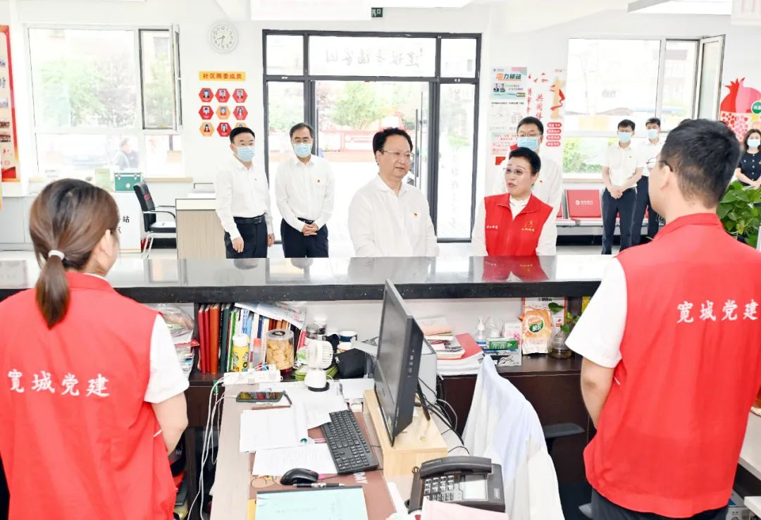 7月10日,省委书记景俊海到长春市宽城区长山花园社区调研,与社区工作人员亲切交流,实地察看便民服务开展情况。