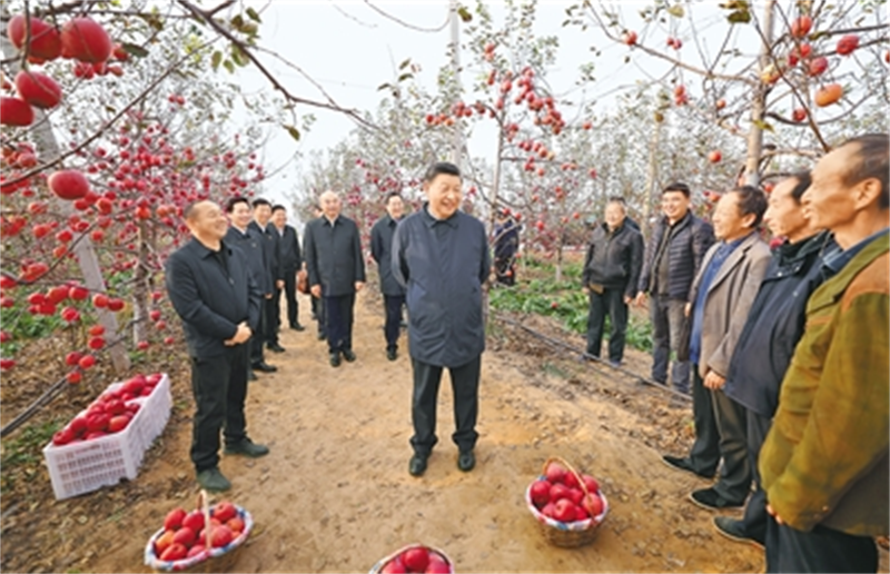 10月26日至28日,中共中央总书记、国家主席、中央军委主席习近平在陕西省延安市、河南省安阳市考察。这是26日下午,习近平在延安市安塞区高桥镇南沟村苹果园同老乡们亲切交流。新华社记者 鞠 鹏摄