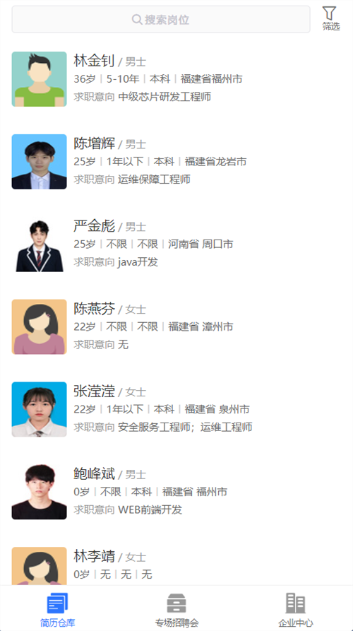 “IT就业网”。该平台约于2016年建成使用,由产业服务公司负责具体开发运营,是一个专注于信息技术人才的招聘就业平台。通过与产业服务公司副总经理黄美龙访谈交流了解到,“IT就业”平台的定位是作为人才引进的辅助工具,非商业化运营平台,致力服务于园区企业招聘、人才就业,将软件信息+人才服务+产业发展深度融合,希望通过多年的实践沉淀、成果转化,形成园区在人才服务方面的数字资产。发展至今,“IT就业”平台已同步开发网页端、公众号及小程序,关于企业招聘职位、人才简历、活动情况等数据与“福山数字人才平台”联通。