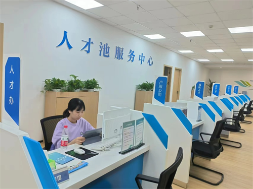 “数字人才池服务中心”:园区的人力资源机构多分散在各个区,且擅长的领域不同,人才池服务中心的作用就是把他们聚集在一起,按照“常设窗口,按需办公”的工作思路,设置6个人才服务台,方便企业和人才解决人力资源相关问题。其中:人才办服务台主要解决的是政策咨询及申报、生活服务;服务公司服务台主要负责人才招聘和培训;福讯服务台负责灵活就业、人事外包;启业人才服务台负责人才招聘、人才培训、直播带岗,另外2个服务台提供给园区其他人资机构,根据需求灵活办公。