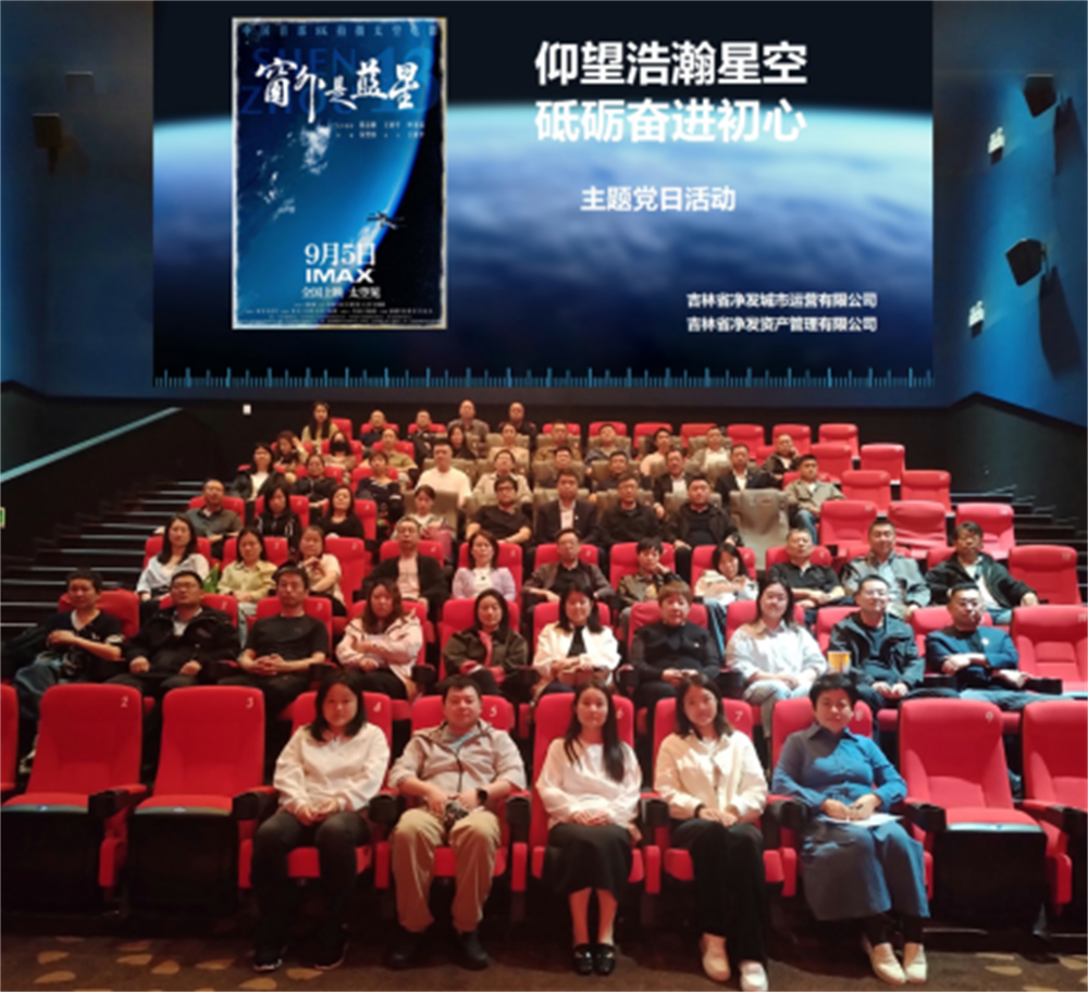 为深入贯彻落实国家科普工作相关部署,推进吉林省科普活动月主题活动,丰富科普内容供给,创新科普传播形式,助力长春航展,在净发集团党委的号召下,2025年9月28日,吉林省净发城市运营有限公司党支部与吉林省净发资产管理有限公司党支部联合举办了一场别开生面的主题党日活动,共同观看了影片——《窗外是蓝星》。